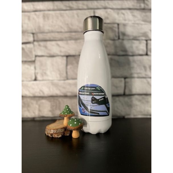 Deze fles heeft een afbeelding gebaseerd op de helm van Lewis Hamilton en is voorzien van nummer 44.