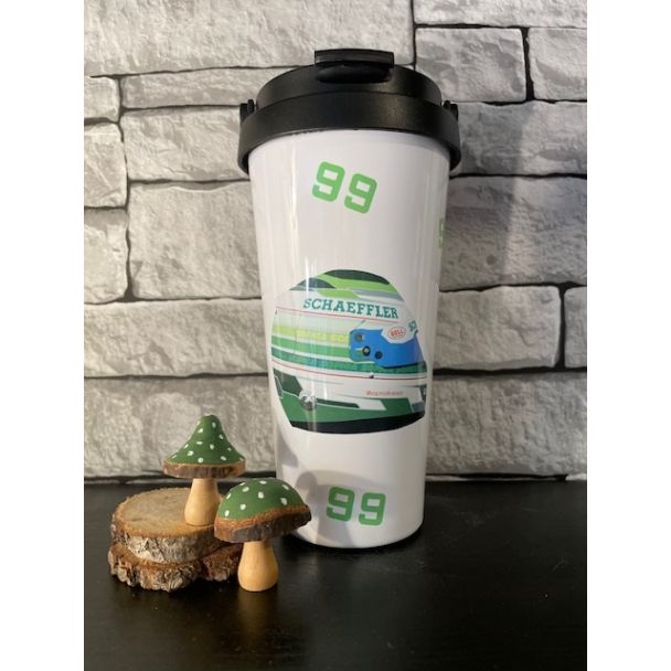 Deze beker heeft een afbeelding gebaseerd op de helm van Sophia Floersch en is voorzien van het nummer 99.